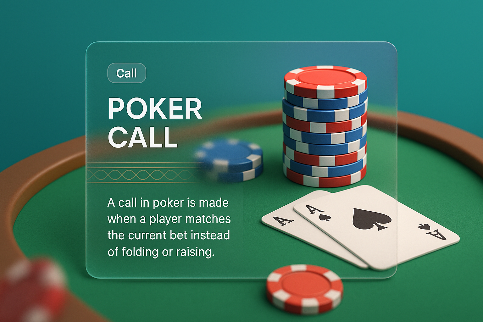 /Collection: /by davooda/Type: PNG/A visually striking 3D poker scene featuring chips and cards on a green felt table. The design includes a transparent information block with a title and description about making a call in poker.