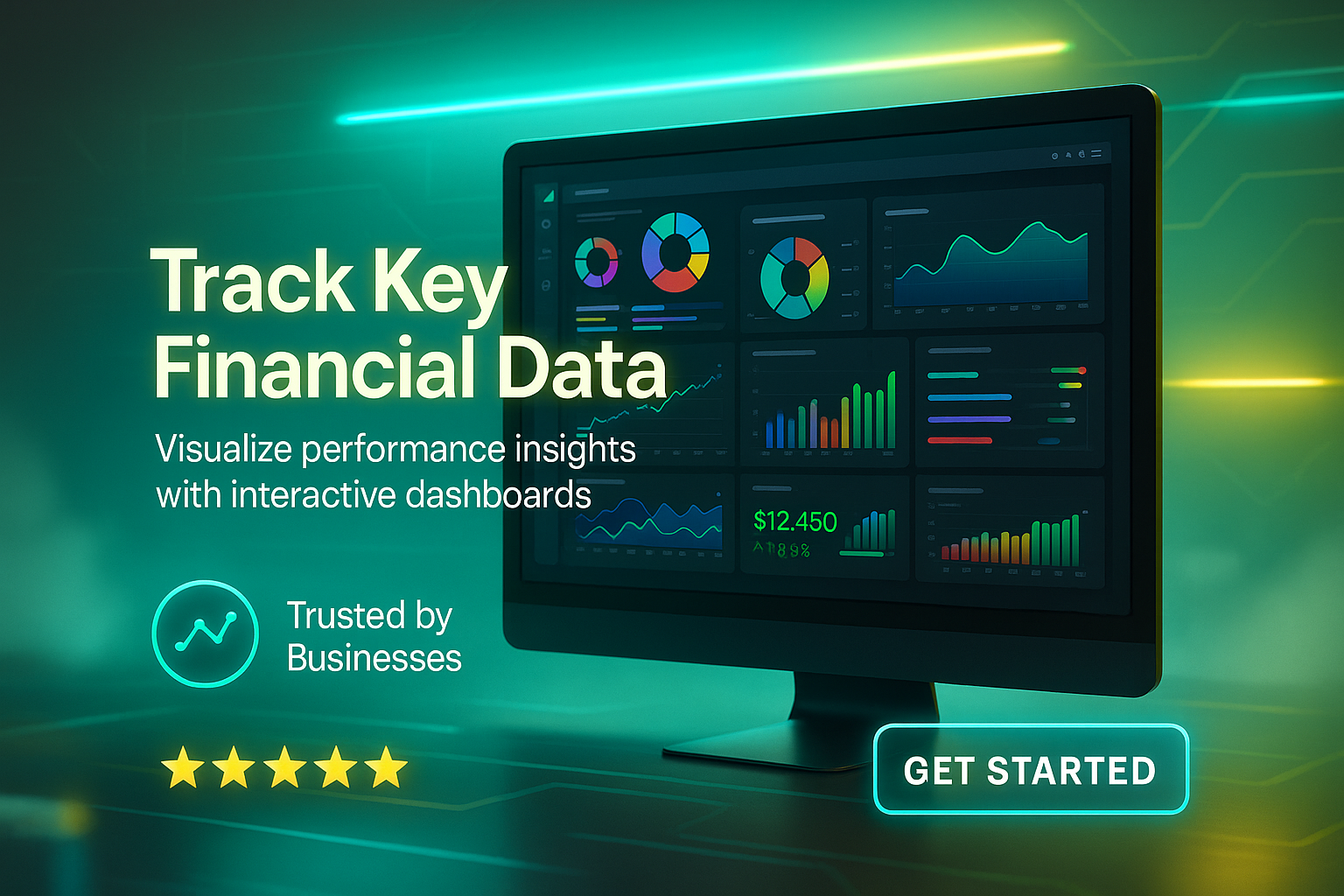 Promotional image showcasing a modern financial data dashboard on a computer screen, emphasizing visual analytics and business insights. Ideal for digital marketing in finance.