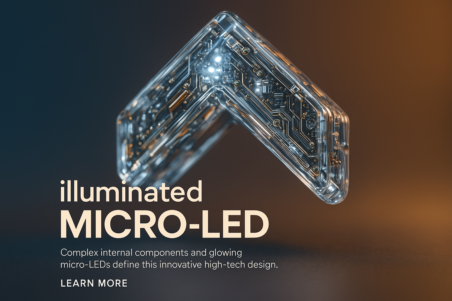 /Collection: /by davooda/Type: PNG/A stunning hyperrealistic 3D representation of a chevron-up object, showcasing intricate micro-LEDs and circuit boards within a glass-like polymer surface. The polished metallic elements reflect light beautifully.