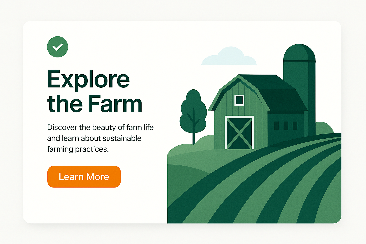 A clean and professional landing page design featuring a farm illustration. The layout includes a prominent call-to-action button and clear typography for effective communication.