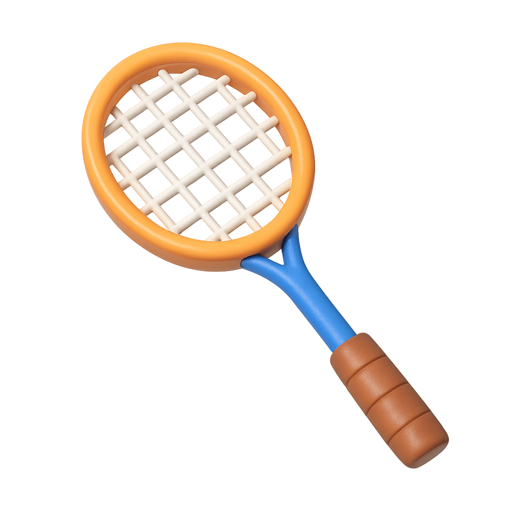 /Collection: /by davooda/Type: PNG/A vibrant 3D icon of a badminton racket shown from a three-quarter view, featuring a transparent background and a volumetric design that enhances its isometric feel.