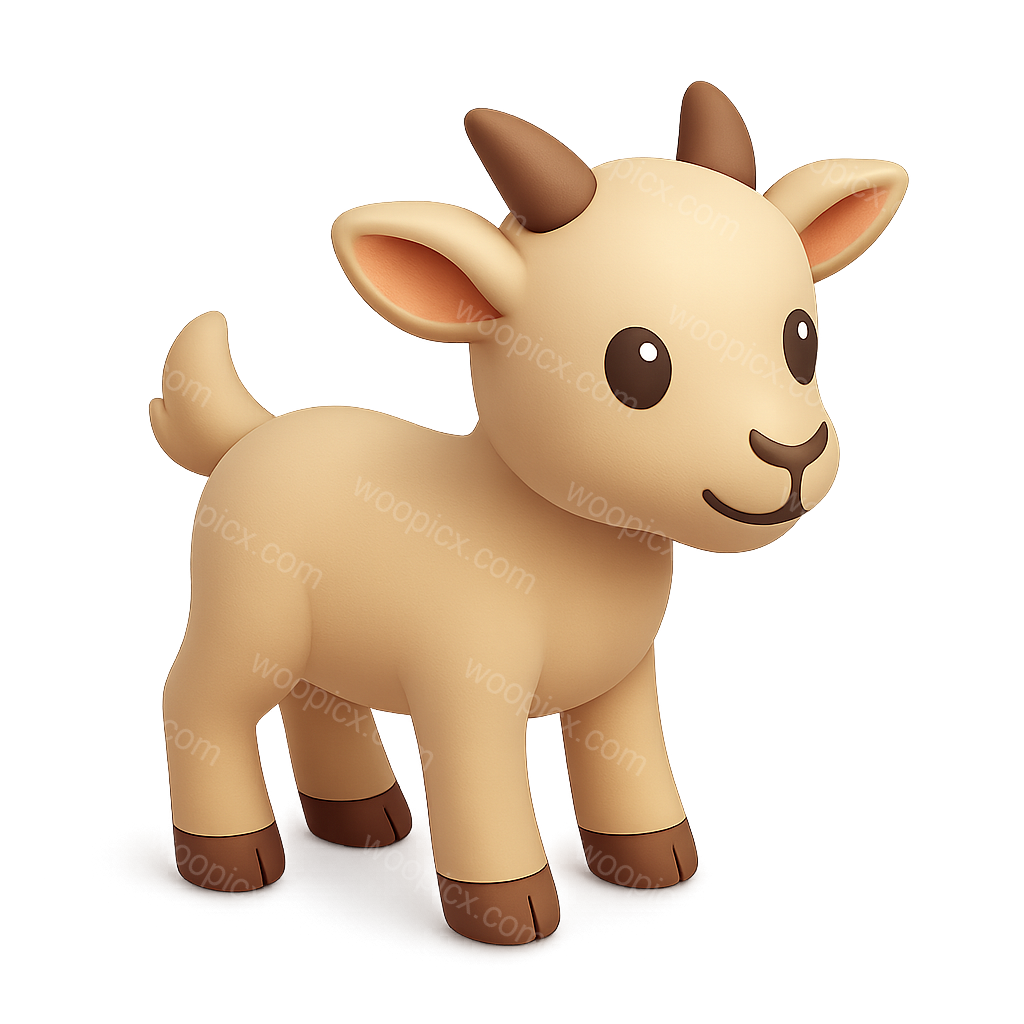 A charming 3D icon of a young goat, presented in a three-quarter view. The goat features soft colors, rounded shapes, and a playful expression, perfect for playful themes.