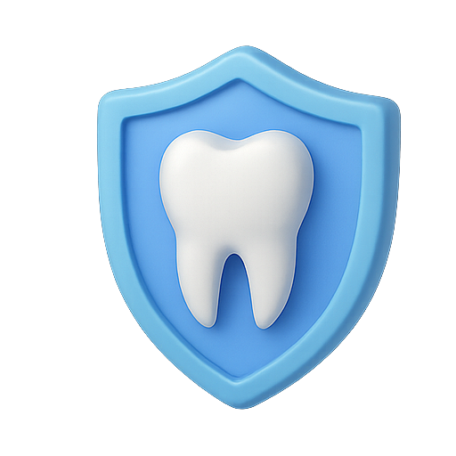 Stylized 3D icon featuring a tooth within a shield, representing dental care and protection. Ideal for dental clinics, health apps, or educational materials.