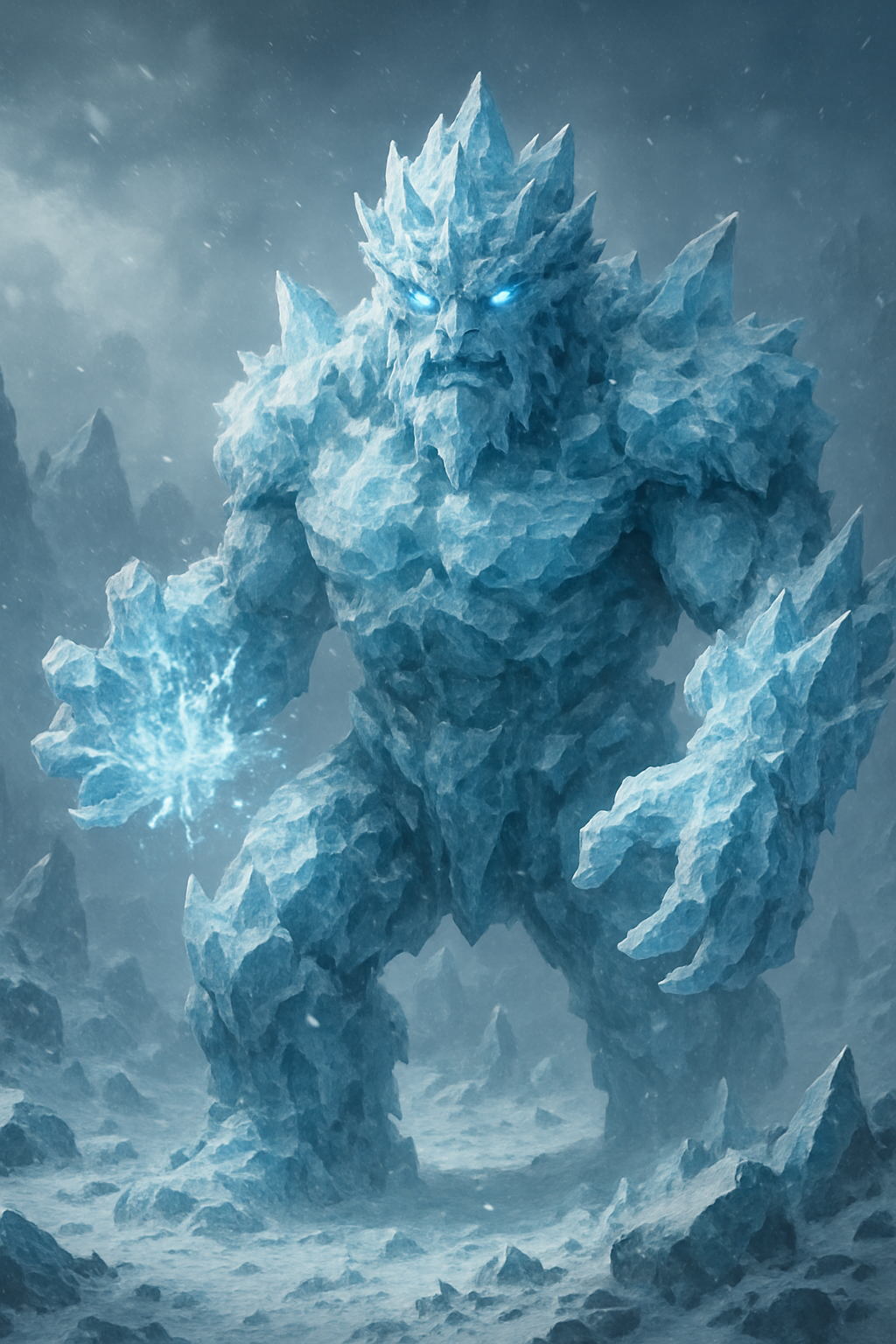Fantasy Ice Giant Character Illustration with Glowing Features