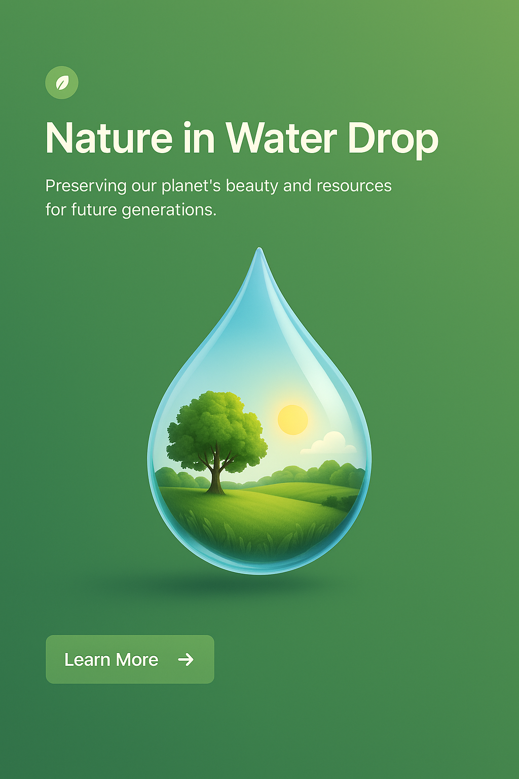Nature in Water Drop: A 3D Illustration of Ecological Beauty