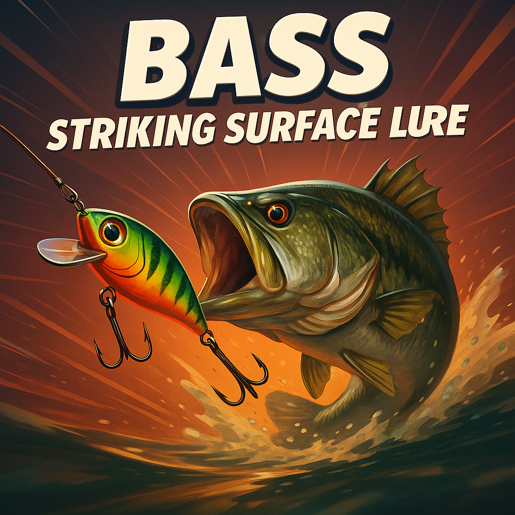 Dynamic Fishing Graphic Featuring Bass and Lure