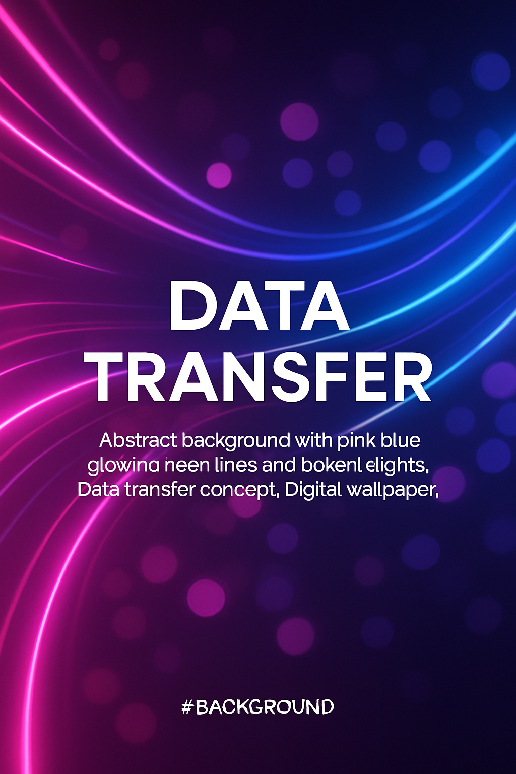 /Collection: /by davooda/Type: PNG/Vibrant abstract background featuring glowing neon lines and bokeh lights, ideal for digital themes related to data transfer. Suitable for tech-related marketing or digital wallpapers.