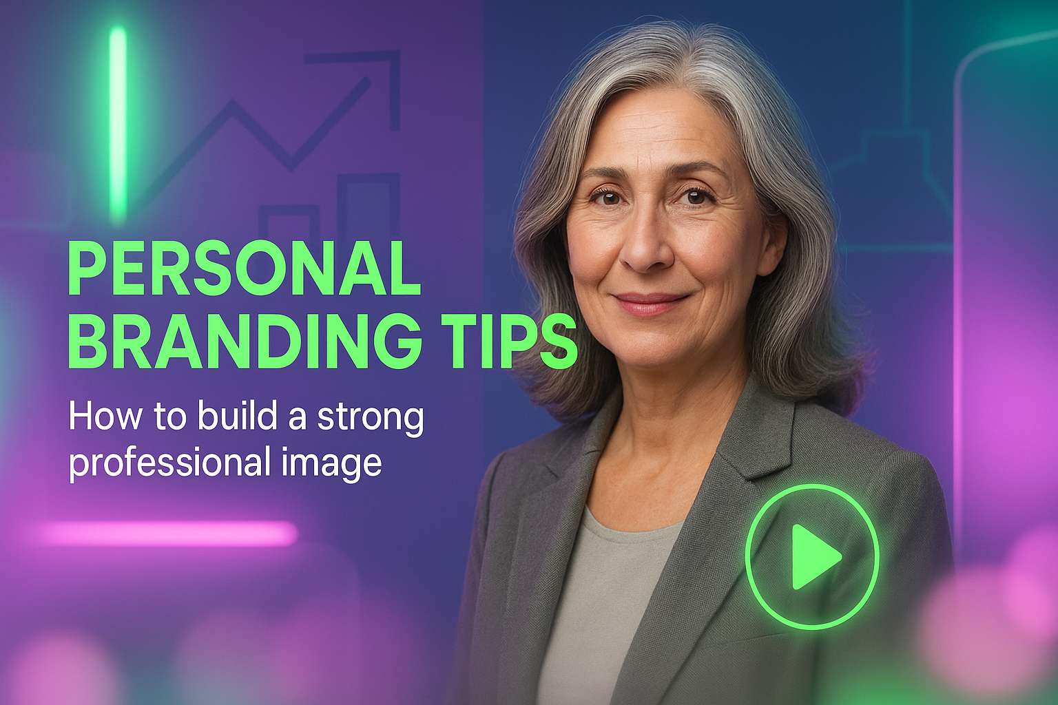 /Collection: /by davooda/Type: PNG/A visually engaging graphic featuring a professional woman, designed to convey personal branding tips. The modern aesthetic is perfect for social media or online courses.