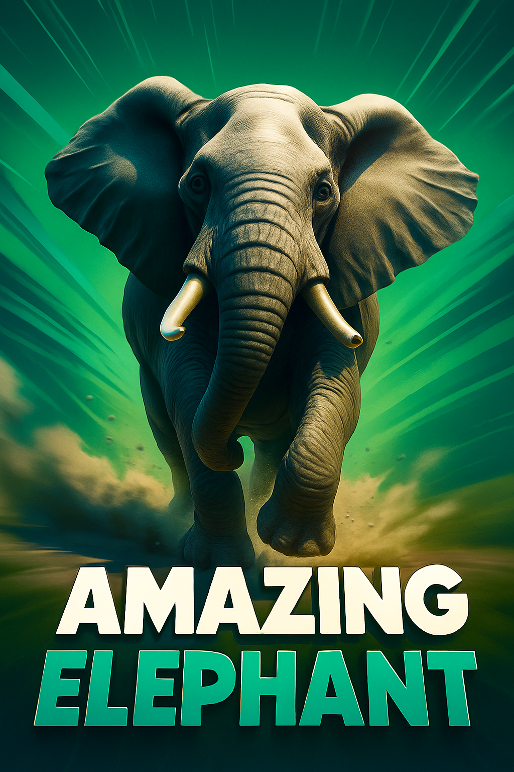 A vibrant and dynamic 3D illustration of an elephant in motion, capturing its majestic presence against a smooth gradient background. The design features bold typography for the title, enhancing visual impact.