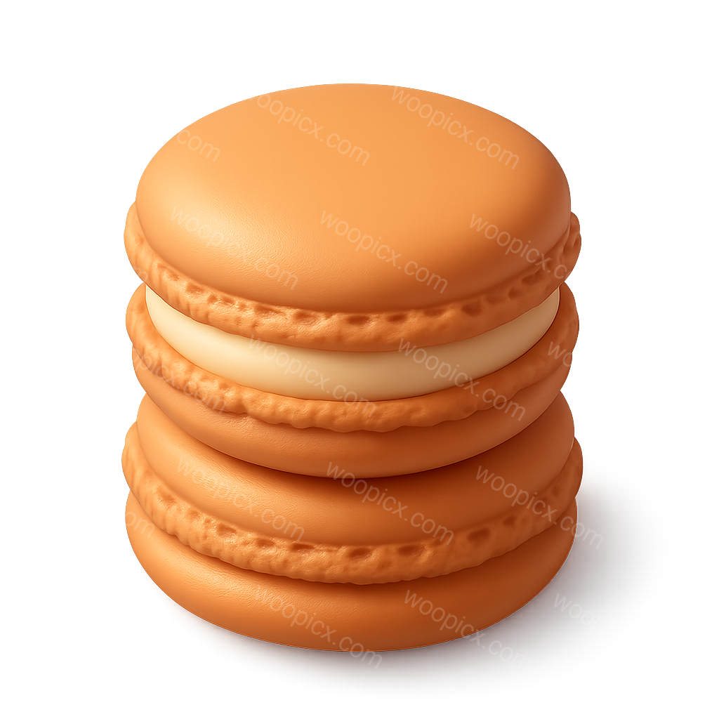 /Premium/Collection: /by davooda/Type: PNG/A beautifully designed 3D icon featuring two stacked macarons in a warm orange hue. The macarons exhibit a realistic texture and depth, with a glossy finish, set against a transparent background.