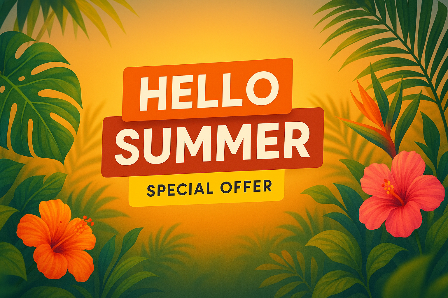 Vibrant Summer Promotional Graphic with Tropical Elements