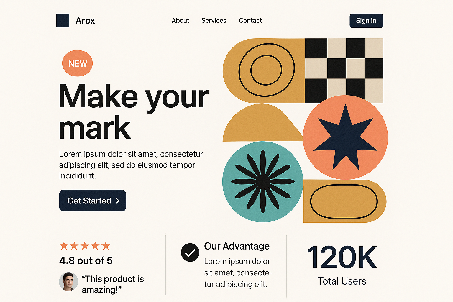 Modern Geometric Landing Page Design with Abstract Elements