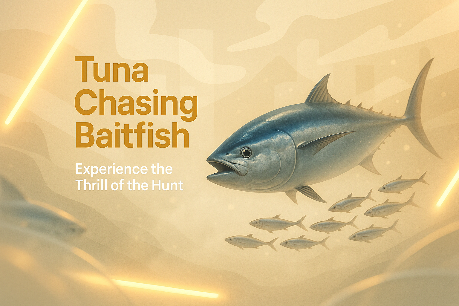 Dynamic Illustration of Tuna Chasing Baitfish in Underwater Scene
