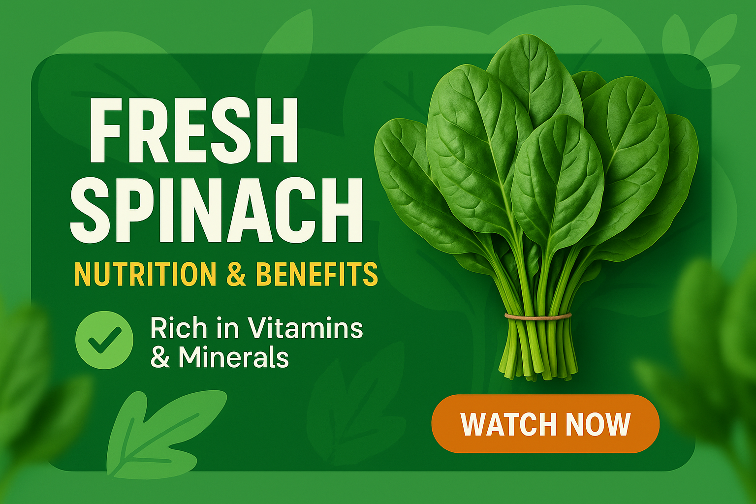 Vibrant promotional graphic showcasing fresh spinach with a focus on its nutritional benefits, designed for health and wellness content. Ideal for social media or blog use.