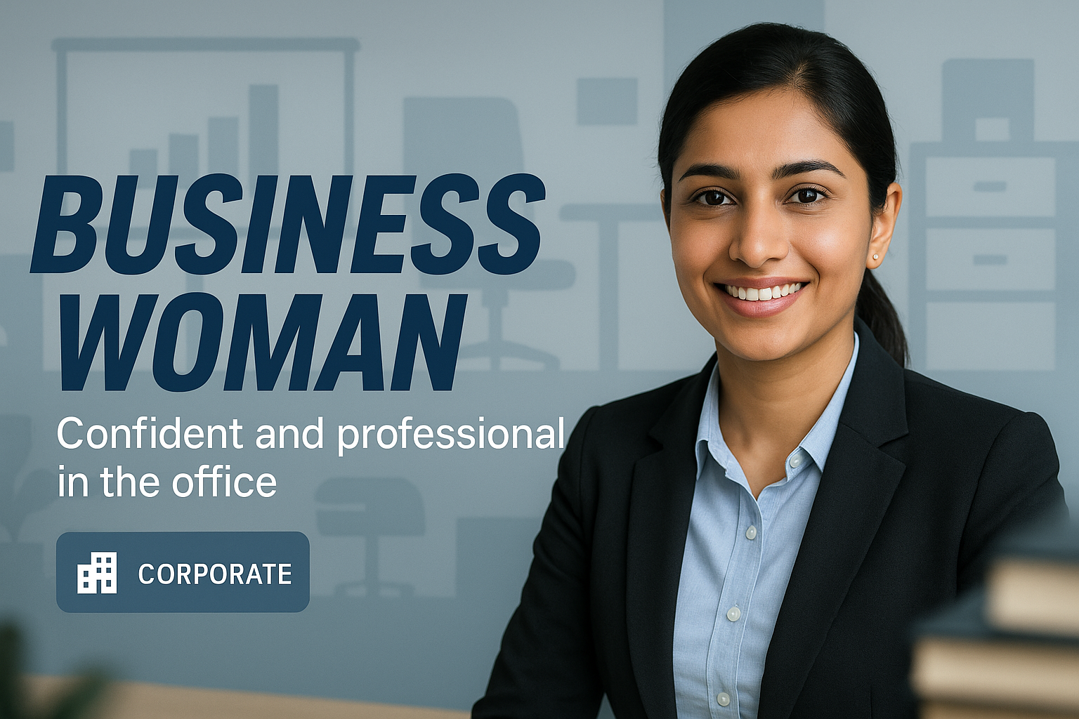 /Collection: /by davooda/Type: PNG/A confident business woman posing in a modern office environment, showcasing professionalism. Ideal for corporate marketing, recruitment, or career-focused content.