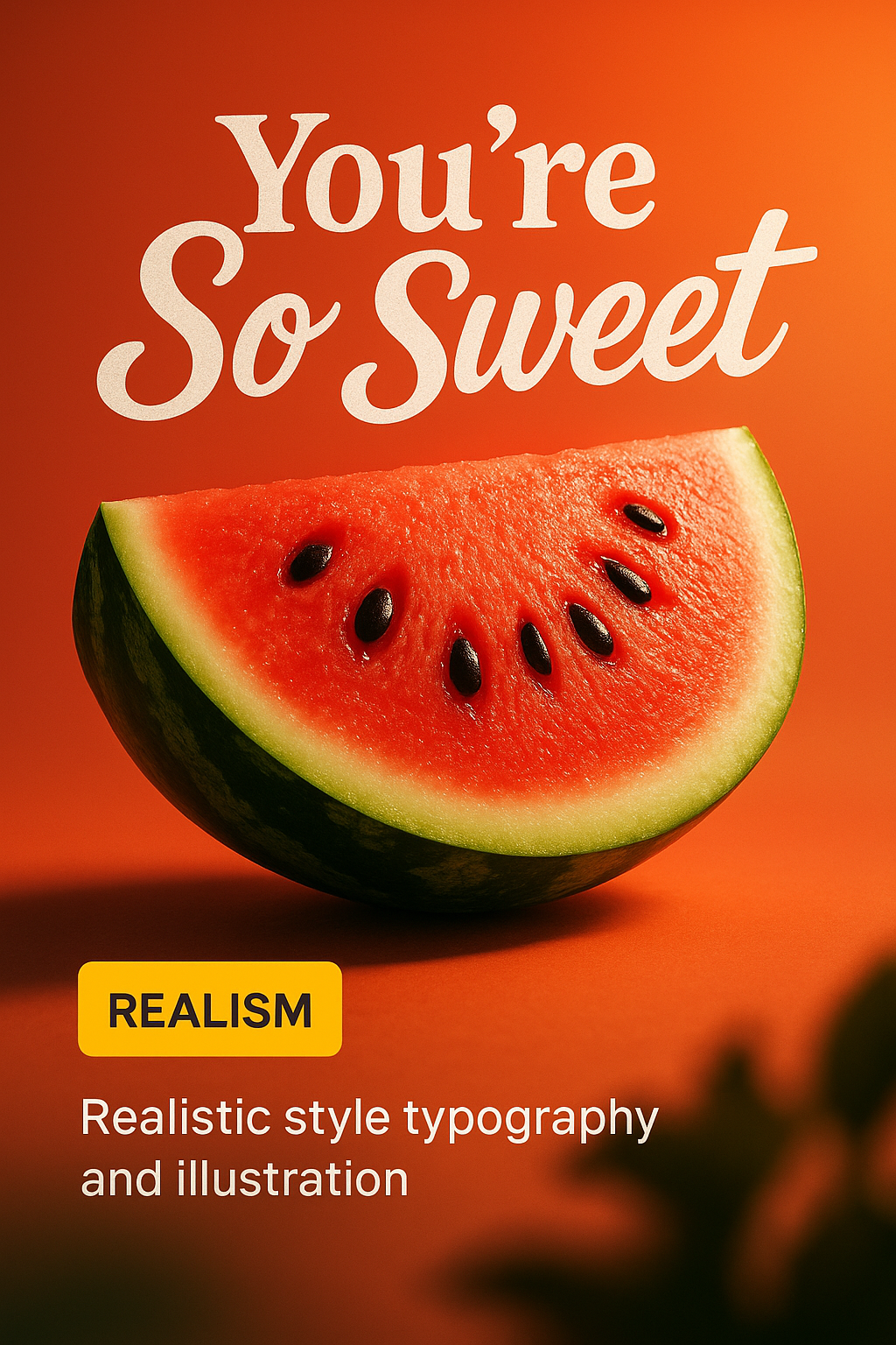 /Collection: /by davooda/Type: PNG/A visually appealing graphic featuring a realistic watermelon and playful typography, ideal for social media posts or marketing materials focused on summer themes.