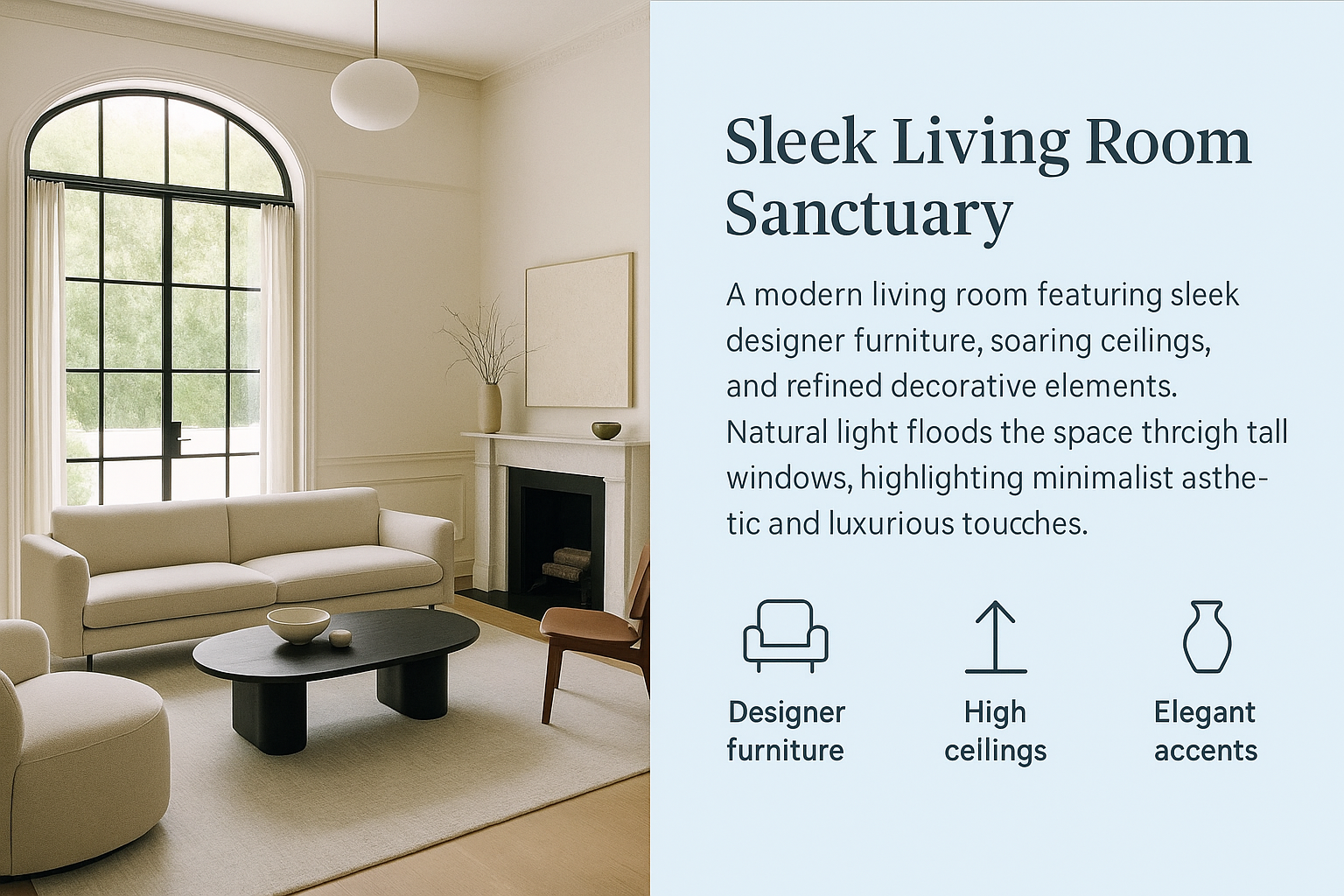 Stylish Living Room Advertisement with Modern Design Elements