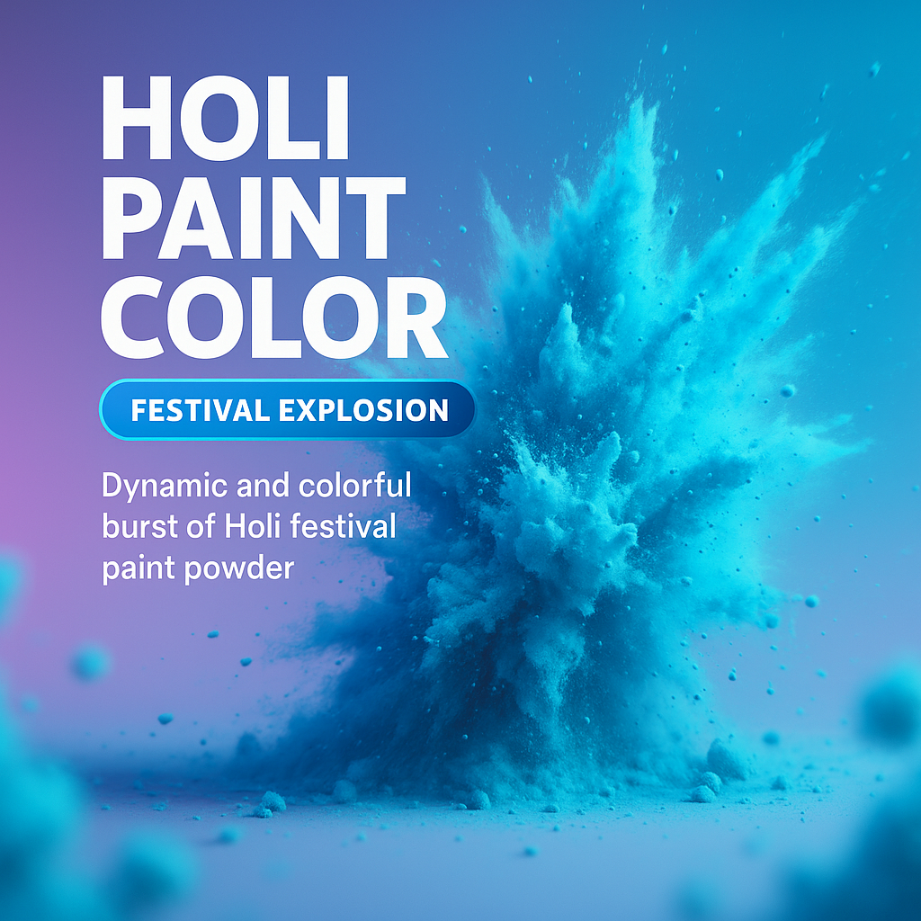 This vibrant image captures a colorful explosion of paint, symbolizing the Holi festival. The dynamic visual style emphasizes energy and celebration, making it ideal for festival promotions.