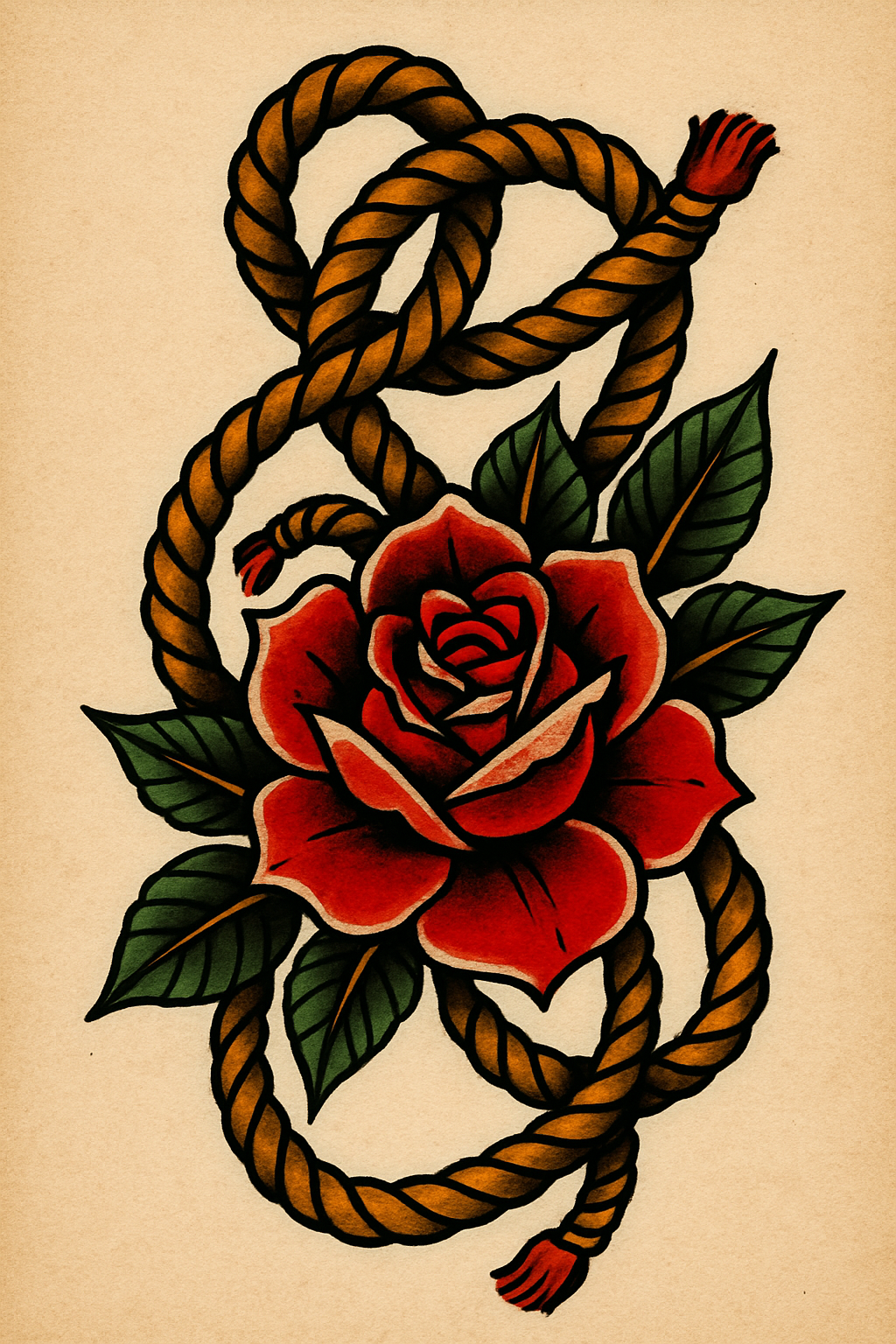 Traditional tattoo design featuring a rose entwined in rope