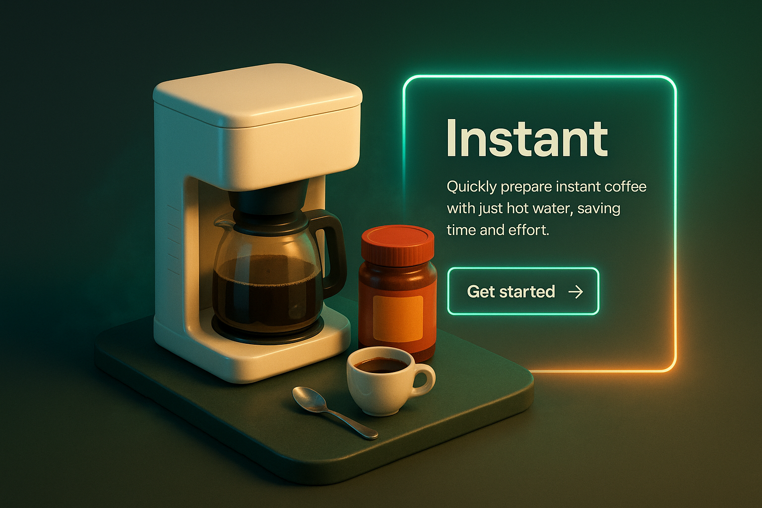 3D Scene of Instant Coffee Preparation with Neon Accents