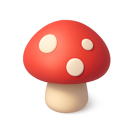 A vibrant 3D rendering of a red mushroom with white spots, showcasing a playful and whimsical design. Ideal for use in children's illustrations, video games, or fantasy-themed projects.