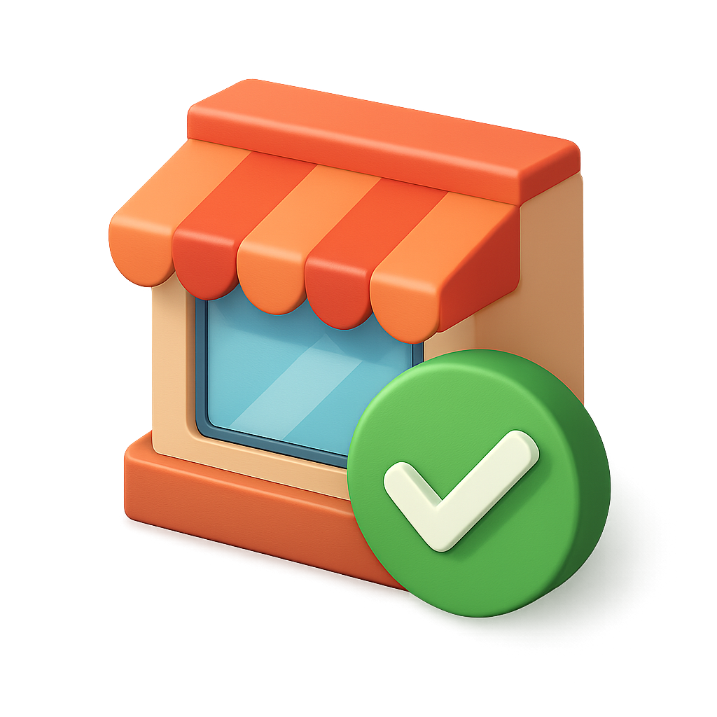 3D Storefront Icon with Checkmark for Business Representation