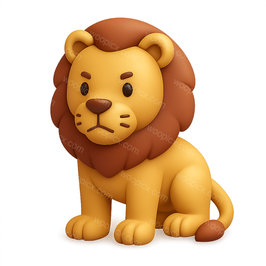 A playful and stylized 3D icon of a lion, featuring a golden body and a rich brown mane. The lion is depicted sitting, with a confident expression, perfect for digital applications.
