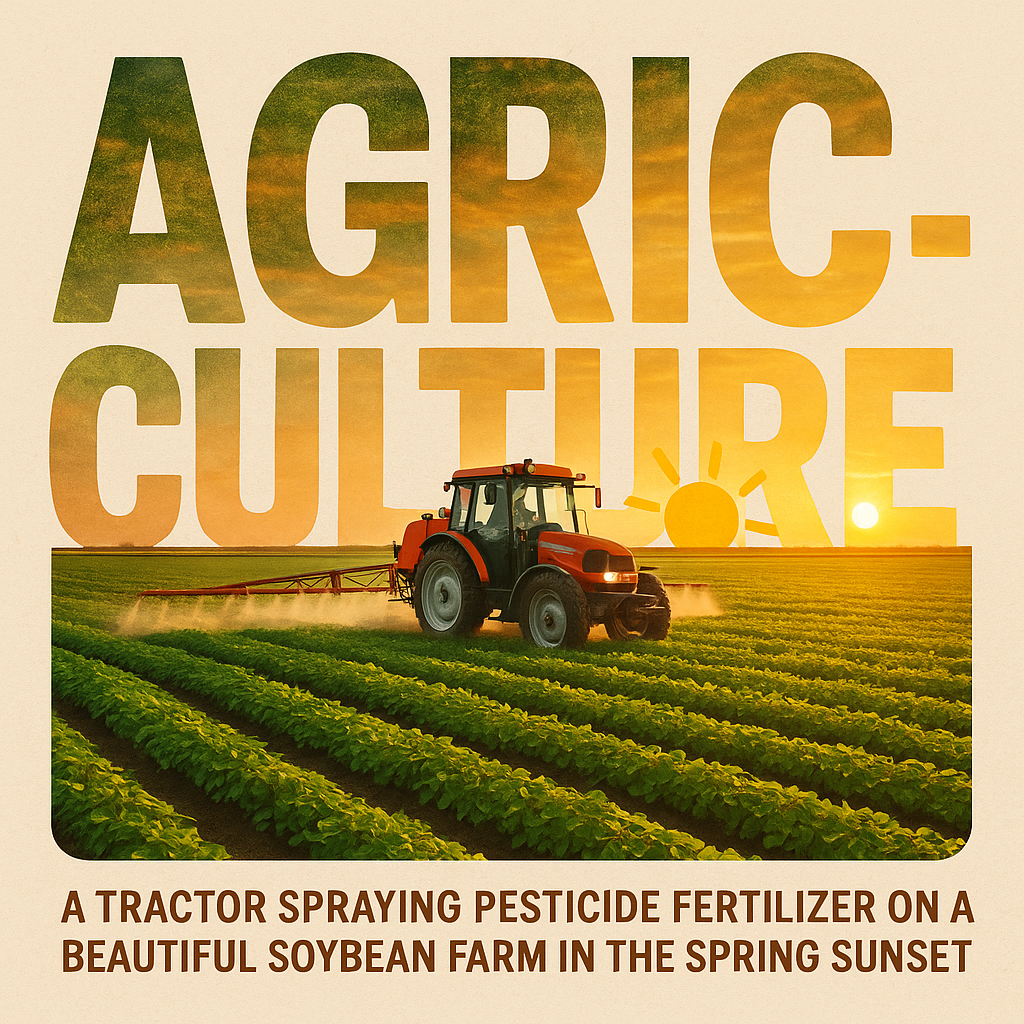 Illustrative Graphic of Tractor Spraying Pesticides in Soybean Field