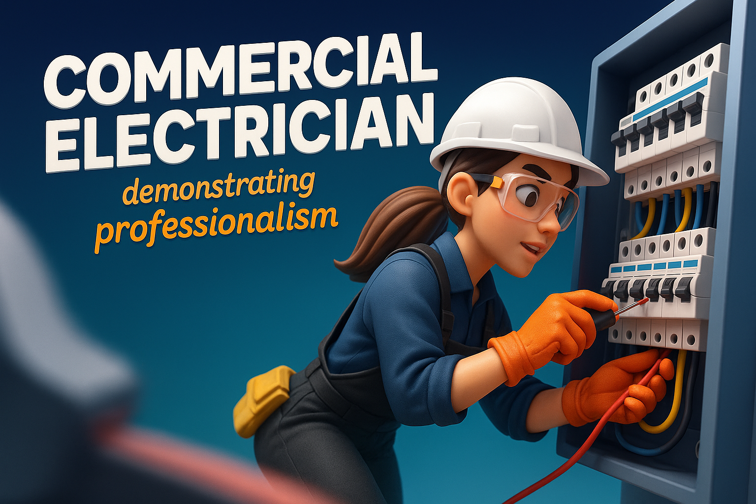Dynamic Female Commercial Electrician at Work in Safety Gear