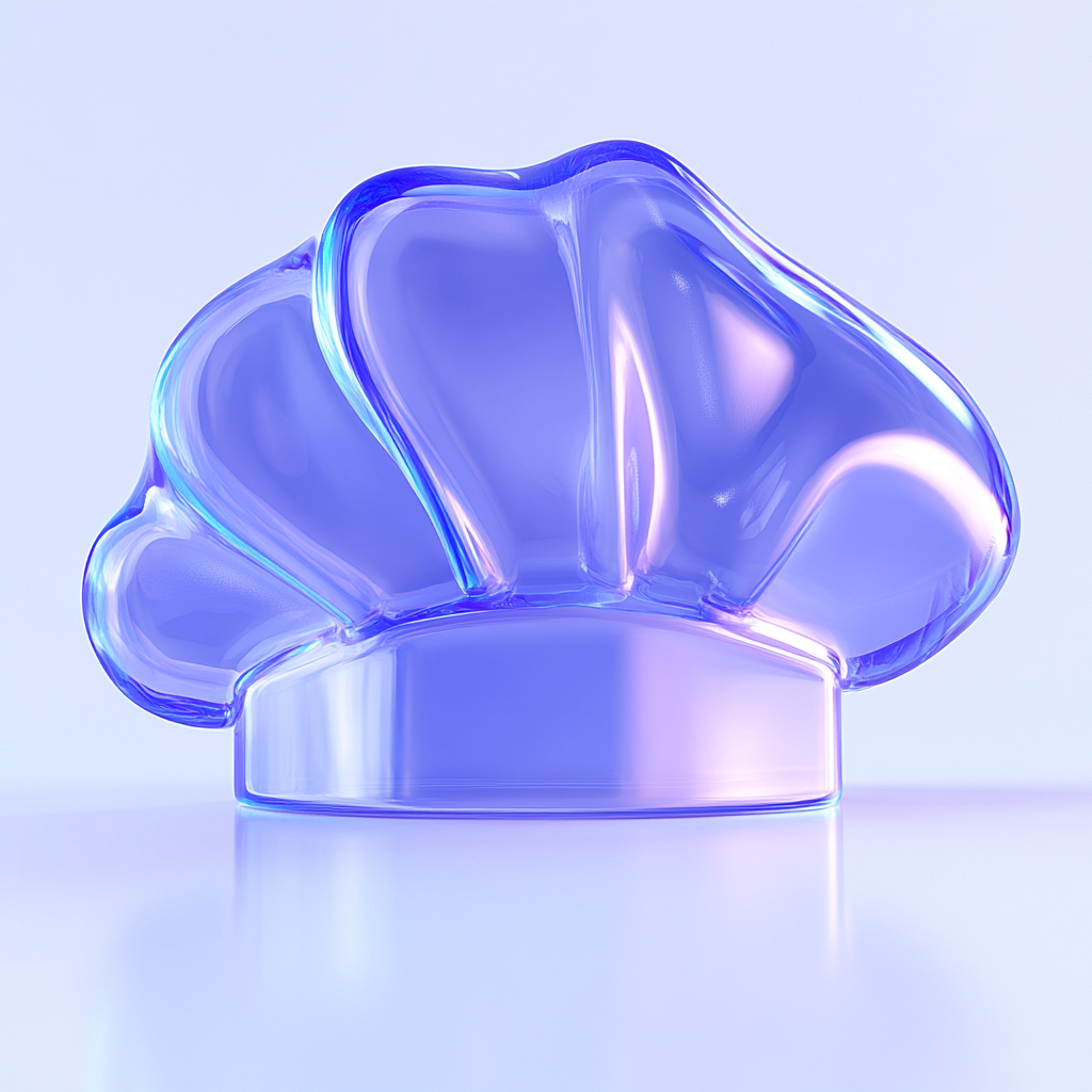 Stylized Glass Chef Hat Sculpture with Soft Lighting
