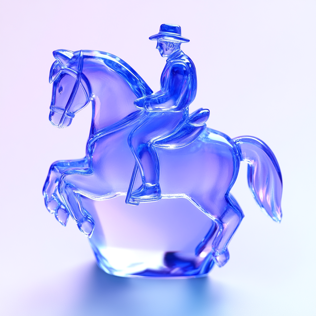 Artistic Glass Sculpture of a Horse and Rider