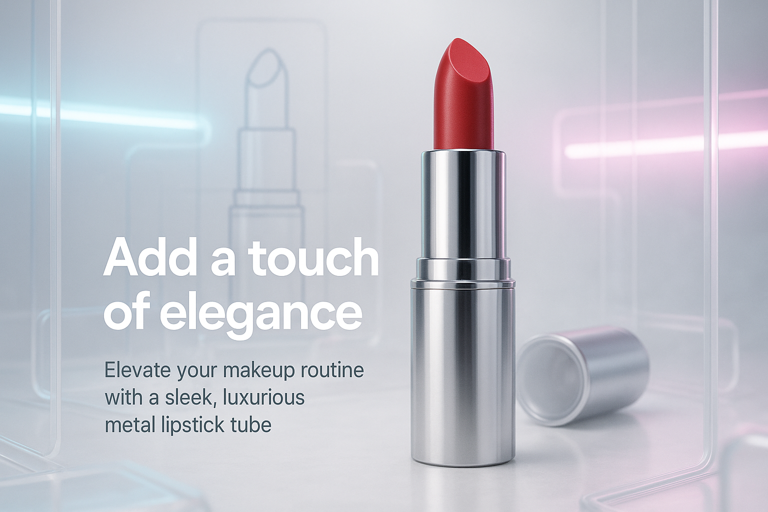 /Collection: /by davooda/Type: PNG/A visually appealing product display featuring a luxurious metal lipstick tube, designed for beauty marketing. The modern aesthetics and soft lighting enhance the product's elegance, targeting makeup enthusiasts.