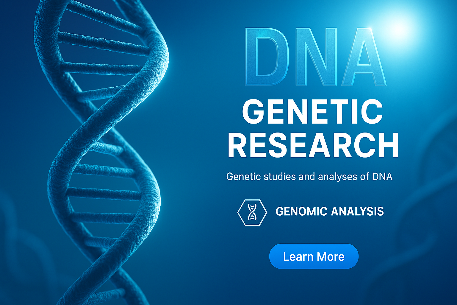 This banner showcases a DNA helix against a blue background, promoting genetic research. It's designed for educational or scientific use, targeting researchers and students.