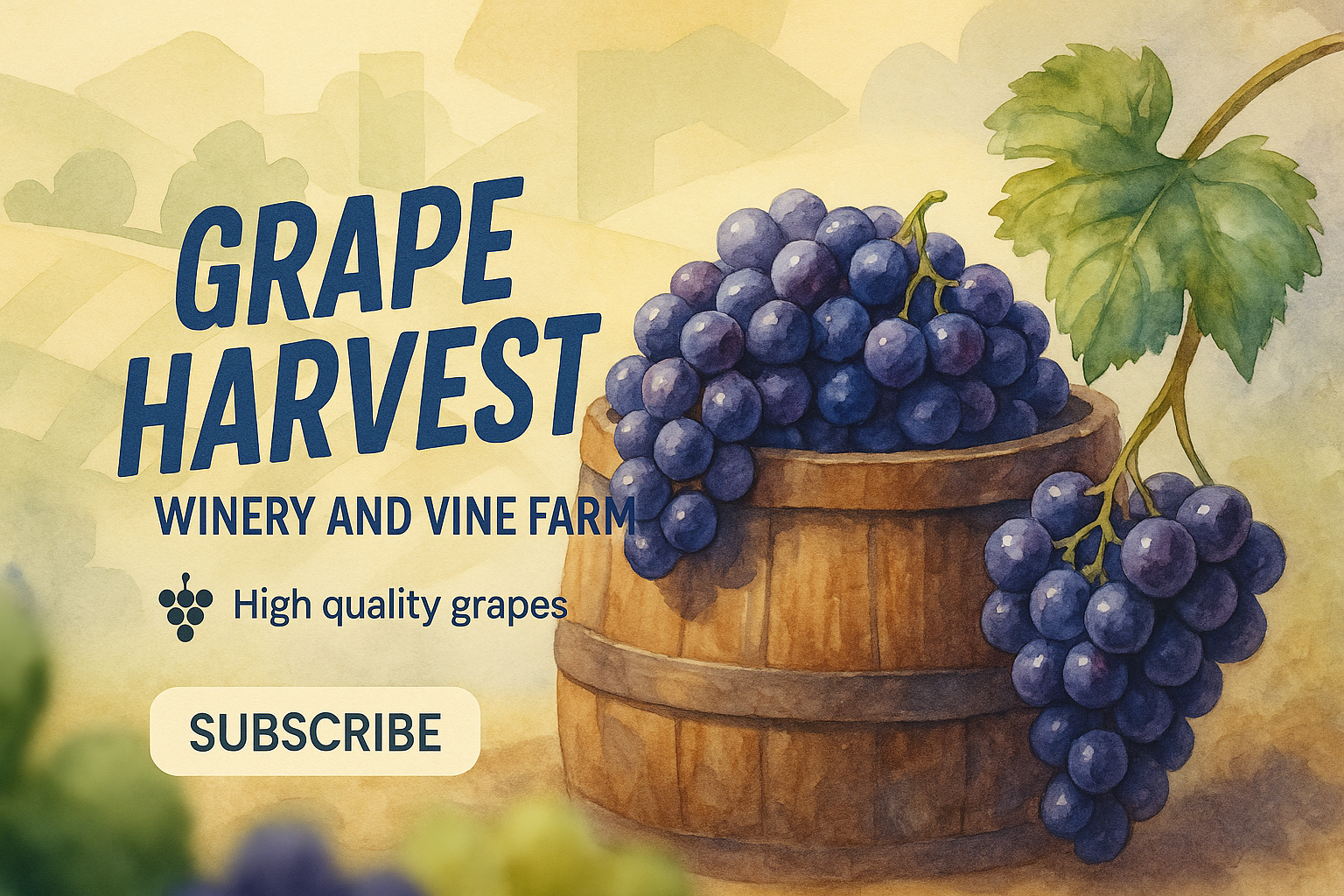 Vineyard Promotional Graphic Featuring Grape Harvest Theme