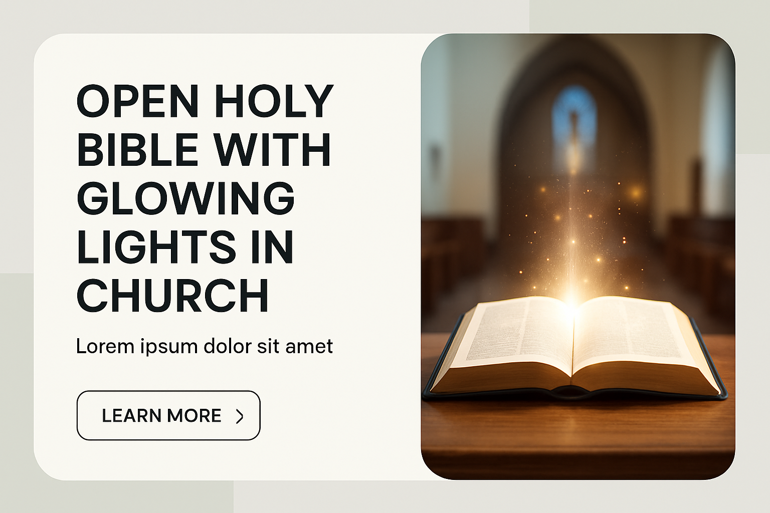 /Collection: /by davooda/Type: PNG/A vibrant, well-lit image of an open Bible emitting glowing lights, set against a softly blurred church background. The design incorporates clean typography and a balanced layout.