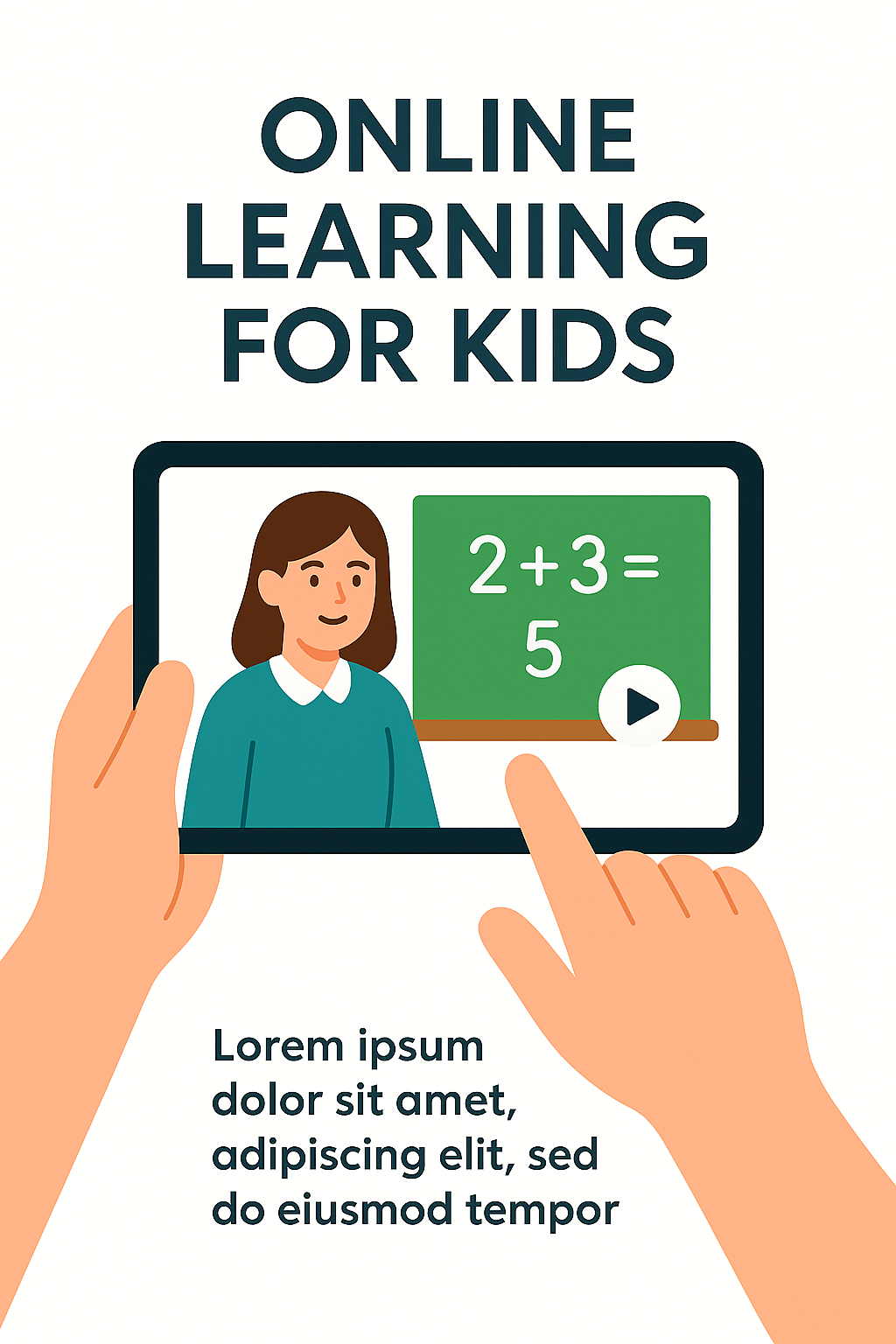 /Collection: /by davooda/Type: PNG/A digital illustration depicting a hands-on interaction with an online learning platform for children. The design is modern and engaging, suitable for educational content aimed at parents and educators.