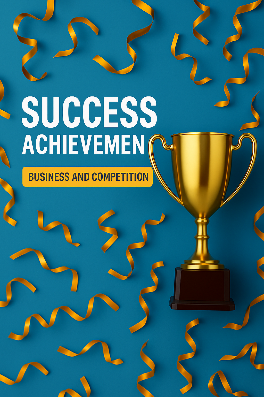 A visually striking graphic featuring a golden trophy surrounded by festive ribbons, ideal for celebrating achievements in business and competition.