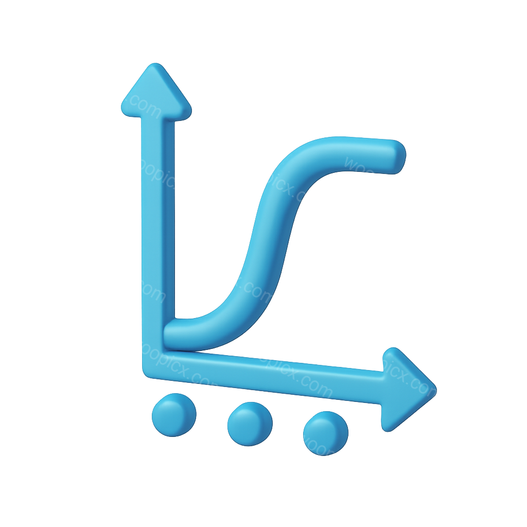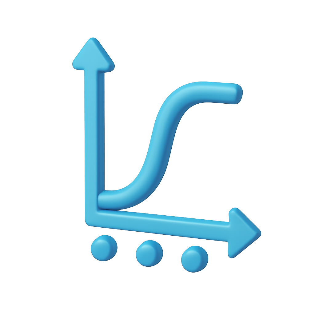 This image features a 3D isometric icon representing an activation function, showcasing a smooth curve and directional arrows in a vibrant blue hue, set against a transparent background.