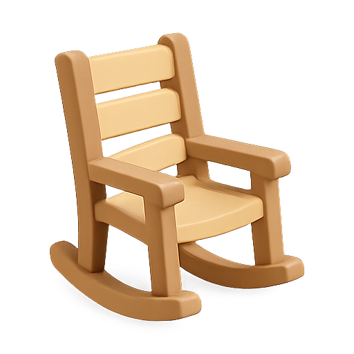 Stylized illustration of a minimalist rocking chair featuring a simple design and soft color palette, ideal for children's rooms or playful environments.