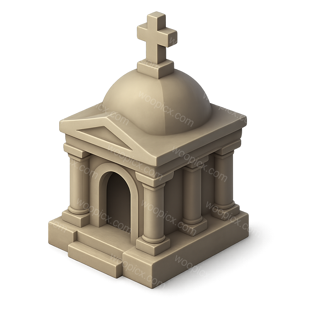 Stylized 3D Mausoleum Icon with Cross and Columns
