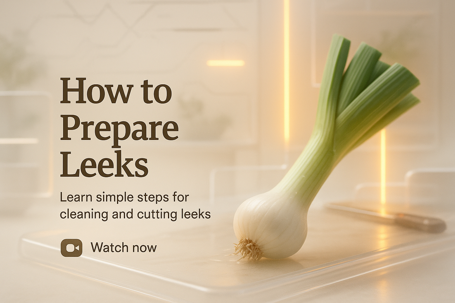 Cooking Tutorial Thumbnail Featuring Leeks Preparation