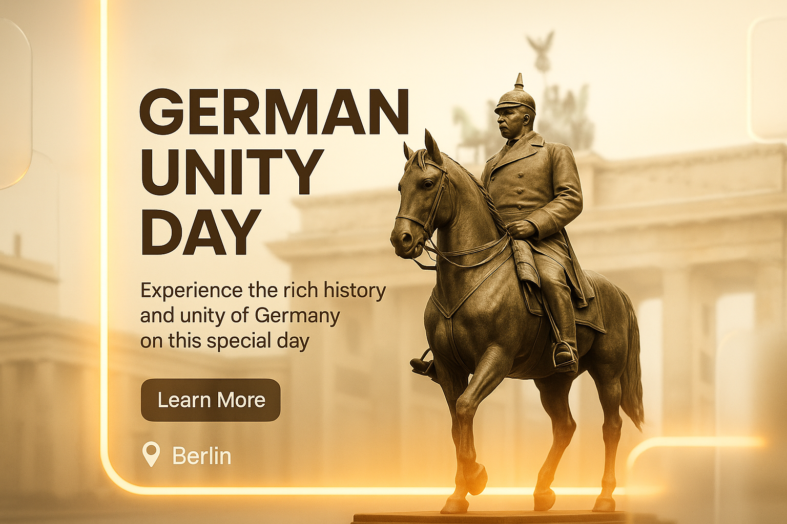 Engaging promotional image highlighting German Unity Day with a historical statue, ideal for social media or event announcements.