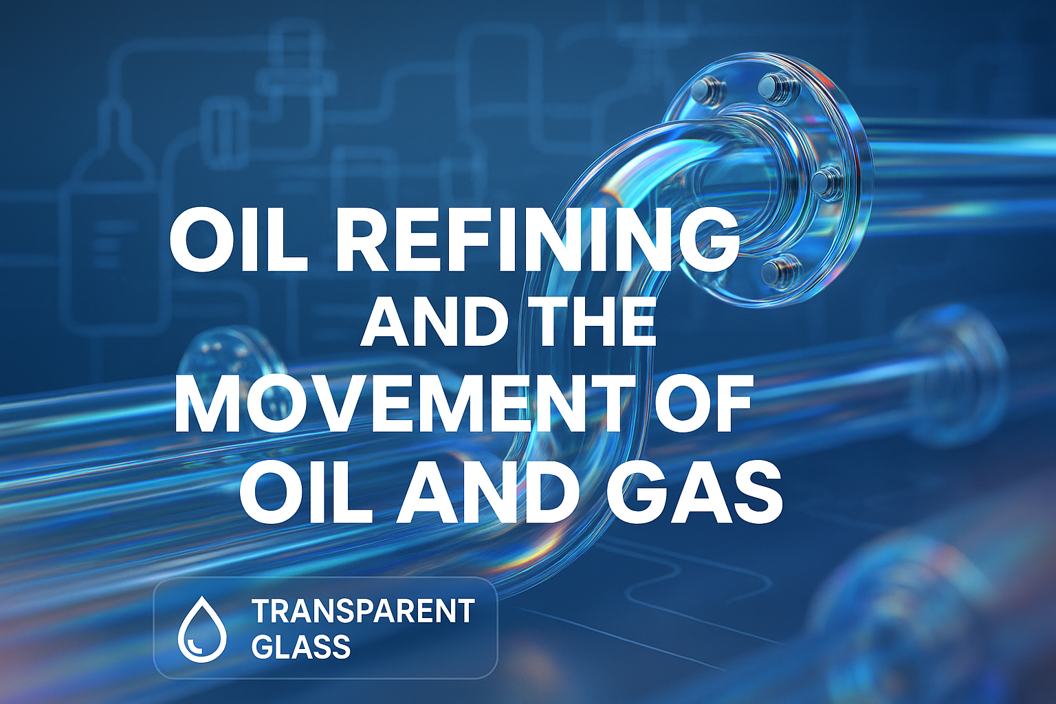 /Collection: /by davooda/Type: PNG/A digital graphic depicting oil refining processes with transparent glass pipes, showcasing the movement of oil and gas. Ideal for educational or industry-related content.