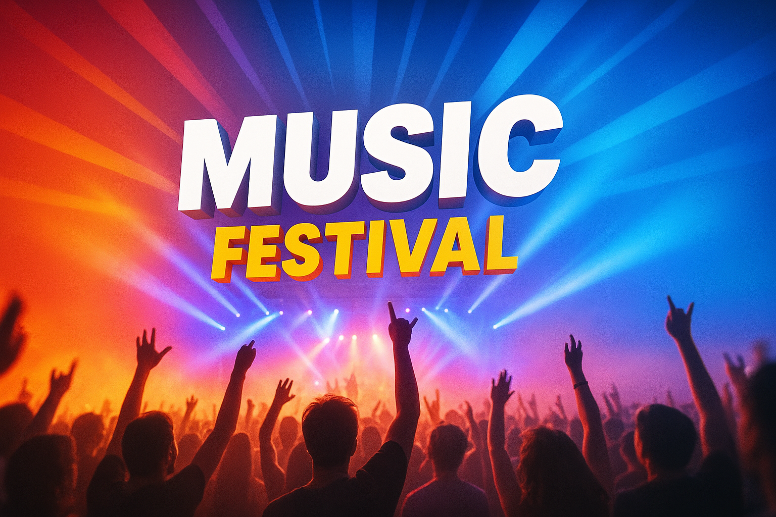 Vibrant Concert Crowd at Music Festival Under Colorful Lights