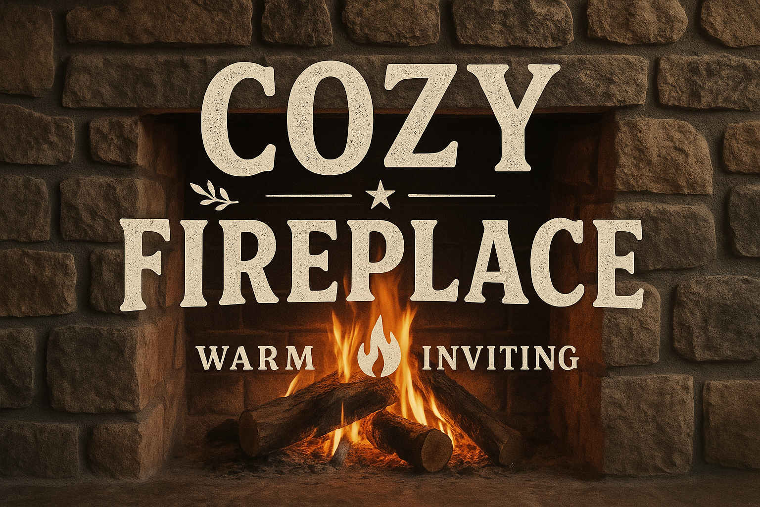 A visually appealing graphic featuring a cozy fireplace, emphasizing warmth and comfort. Ideal for home decor marketing or seasonal promotions.