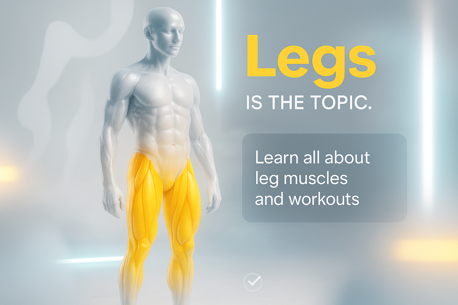 Informative illustration showcasing a stylized human figure highlighting leg muscles, designed for fitness education and workout promotion.