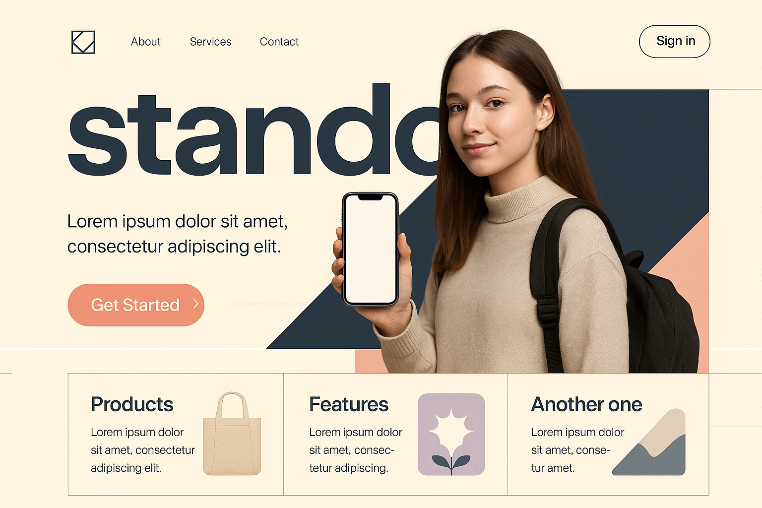 Minimalist Landing Page Design with Smartphone and Typography