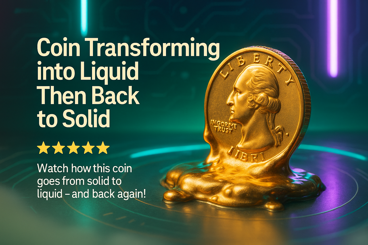 /Collection: /by davooda/Type: PNG/A creative visual representation of a coin transforming between solid and liquid states, featuring vibrant lighting and a modern design suitable for educational or promotional content.