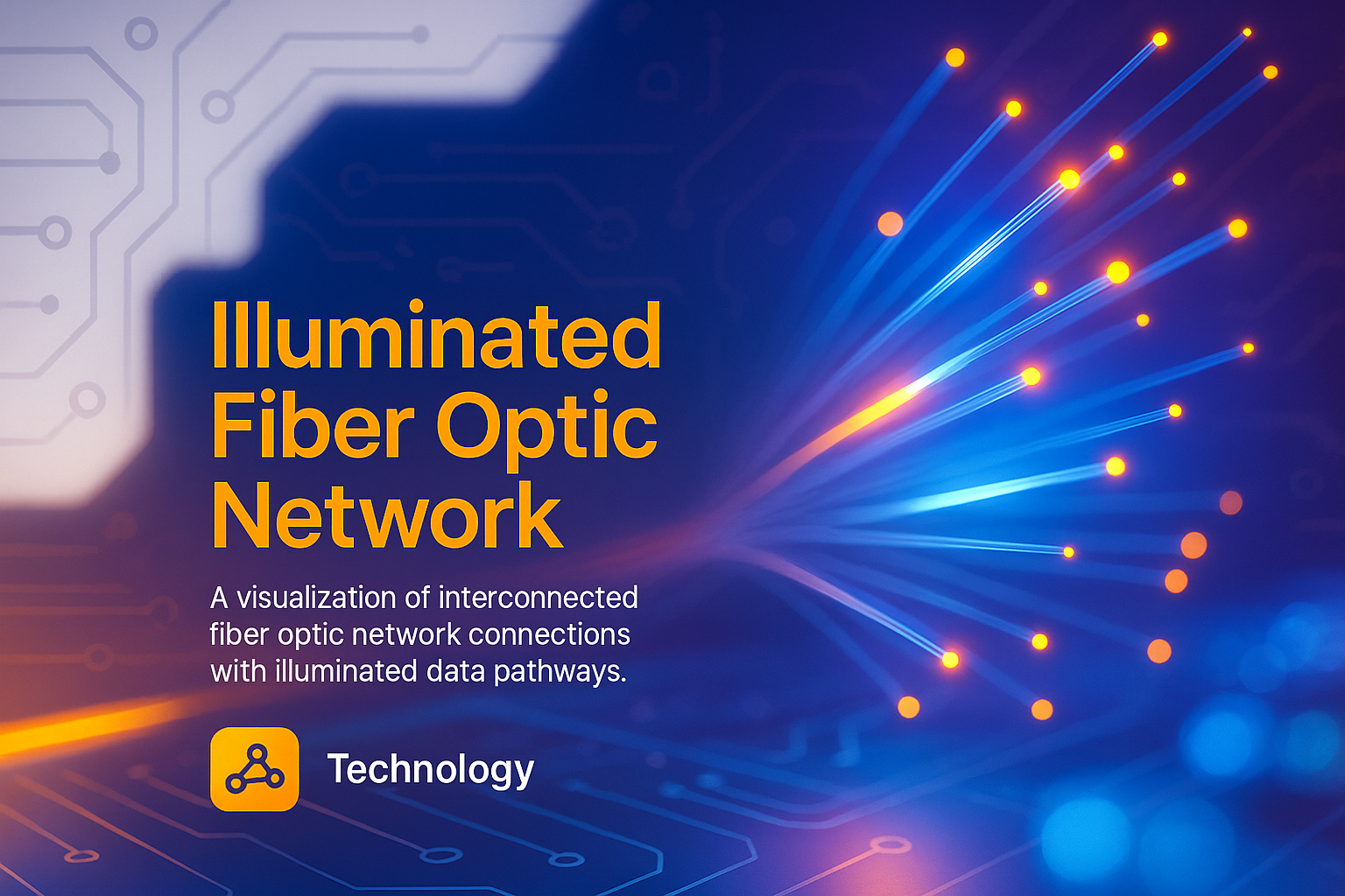 /Collection: /by davooda/Type: PNG/An abstract digital illustration showcasing interconnected fiber optic network connections with illuminated pathways, perfect for technology-related content.