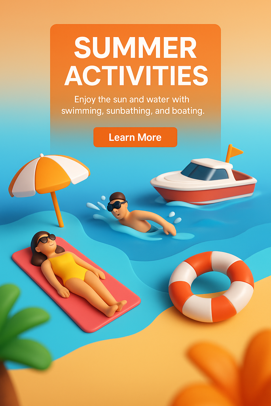 Vibrant 3D Summer Illustration with Beach Elements